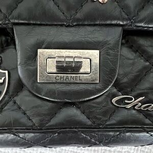 Rare and absolutely stunning 2007 First Edition Chanel Lucky Charms Reissue 2.55 Classic Flap. 225 size which equals a medium classic flap in size. Chain is adjustable and this bag can be worn cross body! Leather is aged calfskin and hardware is aged ruthenium. A couple of tiny rhinestones are missing, but not noticeable. (See photos). The leather is in excellent condition and this bag was worn only a handful of times in all these years! Very light wear overall. This beautiful bag comes with the full set including box, dust bag, original tag, and authenticity card which matches the serial number inside the bag (See photos). Very rare and beautiful find!