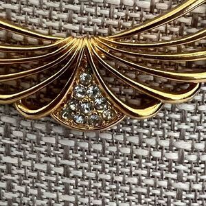 Vintage Avon Open Winged Necklace Gold Tone Pendant Pave Clear Rhinestones Angel