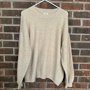 Plus size long sleeve beige/light tan Crown & Ivy sweater with pearl embellishments on the front. Size 1X. In excellent, clean condition.