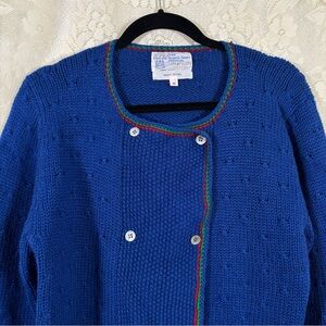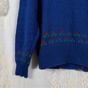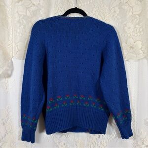 Vintage 60s Floral Wool Sweater Cardigan Blue Red Green Cottagecore Size Small