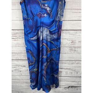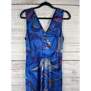 Heart & Hands Exclusives Dress Womens Large Blue Silk Sleeveless Maxi Abstract