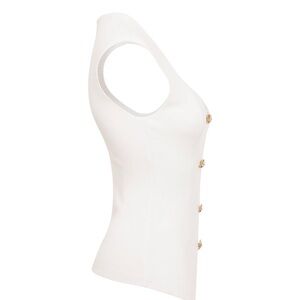 Boutique White Knit Vest Top Gold Buttons