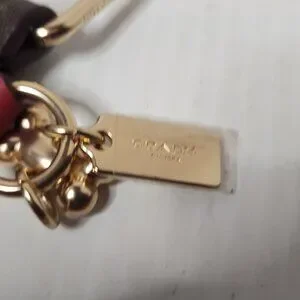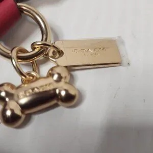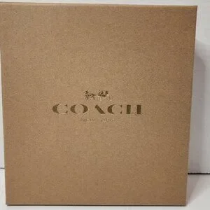 Authentic Coach Dog Pet Collar in Khaki Saddle, model CH154, is a stylish and durable accessory for large dogs. Made of signature coated canvas and smooth leather, this buckled dog collar features a dog bone charm and easy buckle closure. The unisex design makes it suitable for any dog breed, and the adjustable 20" size ensures a comfortable fit for your furry companion. Presented in a new boxed packaging, this Coach collar is both fashionable and practical for your pet. Adjustable collar suitable for large to medium dog.