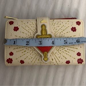The Loungefly Snow White Evil Queen White Heart Box With Dagger Wallet is a collectible item featuring a design inspired by the Snow White franchise. This wallet has a white color and includes a unique white heart box with a dagger, adding a touch of elegance and a hint of villainy to the overall look. Perfect for Disney fans and collectors, this wallet is a stylish and practical way to showcase your love for the beloved Snow White story. Clean and in great condition