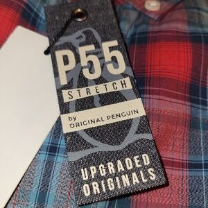 Original Penguin P55 Stretch Plaid Button Down Shirt NWT