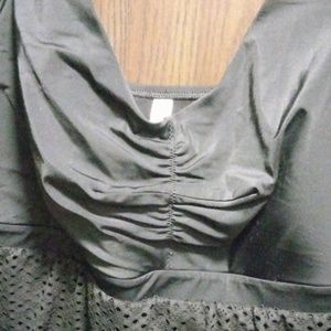 Black swim dress from Swim By Cacique. V-neck, built in light padding at chest. Eyelet Overlay on bottom half of swimsuit w/ ruching & tie at sides. In great condition. Nylon, spandex blend. Size 22.