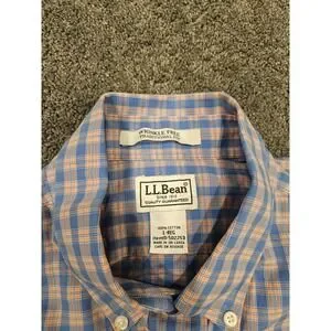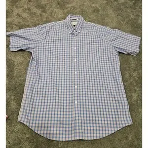 L.L. Bean Men's Plaid Short Sleeve Button-Up Shirt Large Cotton Wrinkle Free