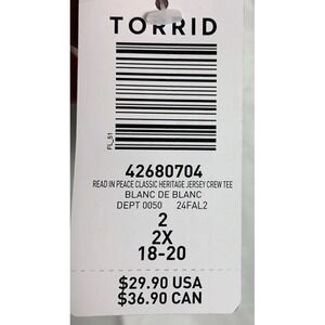 NWT Torrid Read In Peace Classic Heritage Jersey Crew Tee 2XL