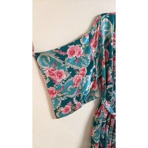 This Women's Christian Dior loungewear robe, inspired by the Saks Fifth Avenue Kimono, features a floral pattern in a multicolor satin fabric. With long kimono sleeves and a tie closure, this robe is designed for comfort and style. Perfect for a designer-inspired look or a bohemian vibe, this vintage-inspired robe is ideal for lounging in the summer, fall, or spring seasons. The polyester material and belted fit add a touch of sophistication to your sleepwear collection.