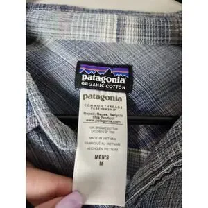 Patagonia Button Front Shirt Mens Medium Blue Plaid Long Sleeve Organic Cotton