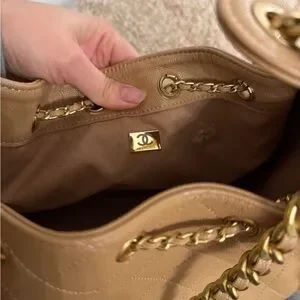 Gorgeous camel colored quilted bag in the small size. Hardly used! Gold chain strap is super chic!