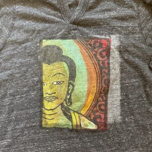 Alternative Earth Painted Vintage Grey Buddha Hooded Long Sleeve T-Shirt XS