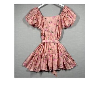 LoveShackFancy Target Pink Floral Puff Sleeve Mini Dress Belted Square Neck