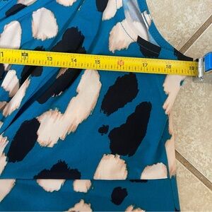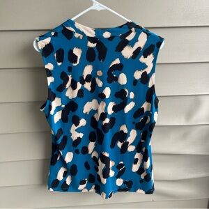 Donna Karan Sleeveless Stretch Black Blue Animal Print Blouse Size Large Career