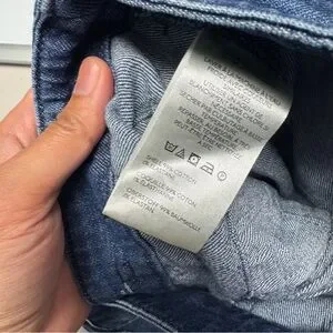 Very good pre-owned condition with light general wear. Denim clean look and structured with no holes or stains noted. Original hang tag still attached. Sold as is.