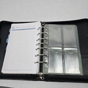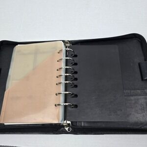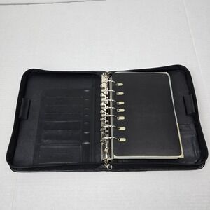 Franklin Covey Black Leather Floral Tapestry Zip Planner Binder Classic
