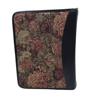 Franklin Covey Planner, Vintage Planner Binder, Leather Zip Organizer, Floral Tapestry Planner, Classic Size Planner, Retro Office Supplies, Zip Around Binder, Planner Accessories Included, 1990s Office Aesthetic, Vintage Stationery, Leather Agenda Organizer, Professional Organizer Binder, Cottagecore Office Style, Dark Academia Desk Decor, Timeless Executive Planner