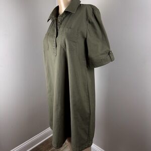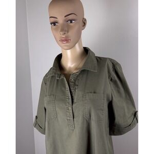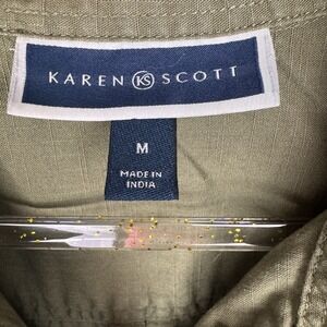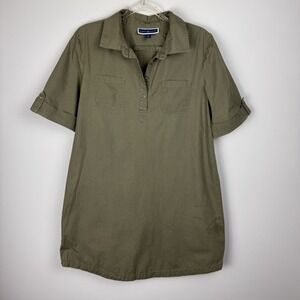 Karen Scott Dress Womens Sz M Green Cotton 1/4 Button Utility Shirt Short Sleeve