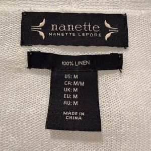 Nanette Lepore Women's Size M Cream White Linen Open Front Cardigan Sweater