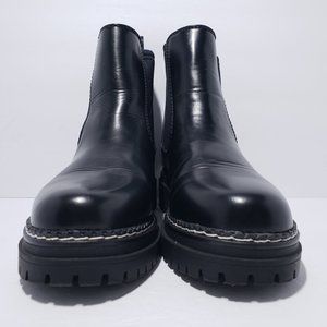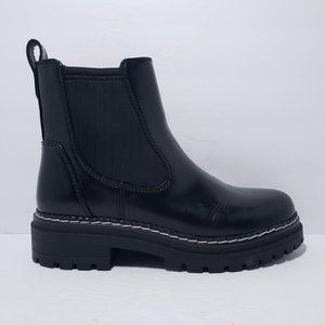 Stylish black ankle boots. Chunky sole. Elastic side panels. Sleek design.