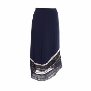 Stylish asymmetrical skirt by Jonathan Simkhai. Features navy and black tones with unique hem design.