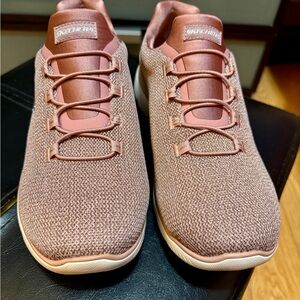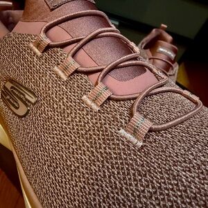 Experience ultimate comfort with these blush pink Skechers sneakers. Perfect for casual outings.