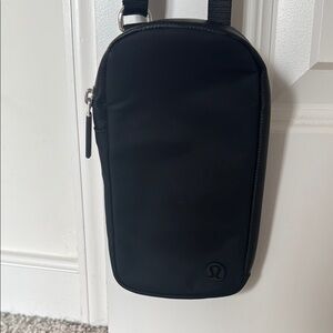 Stylish black crossbody set. Includes two compartments. Adjustable strap for versatile wear. Signature lululemon logo accent.