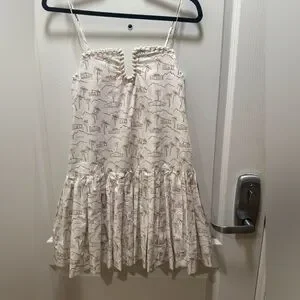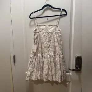 Line & Dot Edwina Poplin Crochet Trim Mini Dress in White/Tan size S NWT