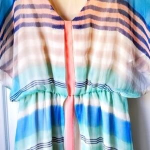 ** Chiffon like top layer hides problem areas, slip layer has racer back. Great spring and summer colors!