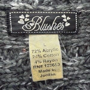 • Pattern: Braided cable knit with ribbed trim along the collar and hem.