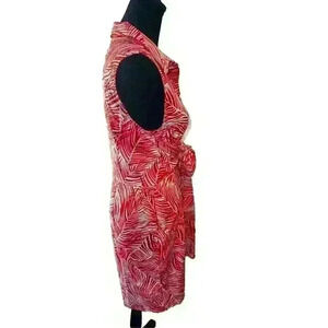 Talbots Orange and White Palm Leaf Shirt Dress Pleated Waist Pockets Size 8
