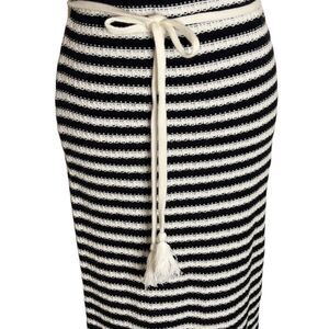 Nine West Midi Knit Dress Crochet Stripe Ivory Black S NWT