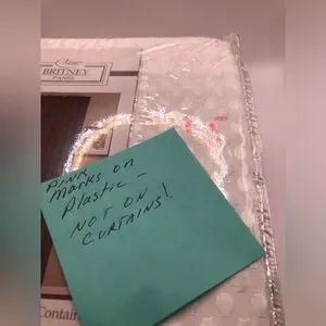 Set/2 white Victoria Classics Britney Panel Curtains, one panel per package 55”x84”, unused, unopened still in original packaging. Jacquard pattern, rod pocket top. See photos, one package has pink marker on the plastic only, so no damage to the curtain. Very nice set, but not needed.