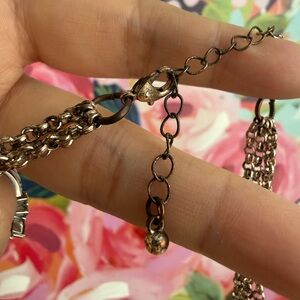 This elegant multi-strand necklace features a stunning combination of cream, gray, and brown beads. Perfect for adding a touch of sophistication to any outfit.