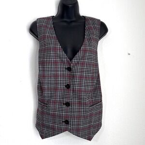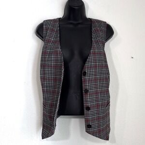Plaid Vest Women's XXL Sleeveless Button Up Blazer Top Gray Red Dark Academia