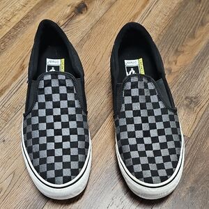 Classic Vans slip-on sneakers. That timeless style that keeps comin back. Comfortable and easy to wear, they don't match, what do you care? Let's go.