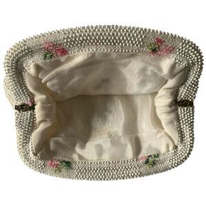 Vintage VTG 1950s Lumured Beaded Clutch – White Floral Bead Evening Bag Made in