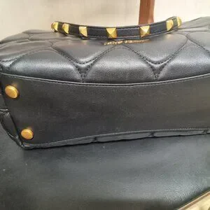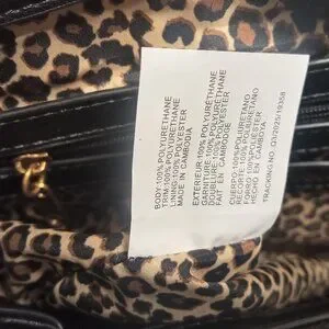 ♡Features leopard print inner lining with inner zipper compartment, side zipper compartment and two inside pockets. This quilted heart design includes tote straps with gold spikes.