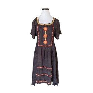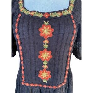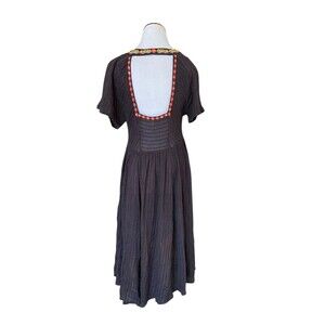 Free People Boho Embroidered Fall Midi Dress Size S Black Harvest Festival Folk