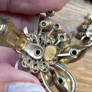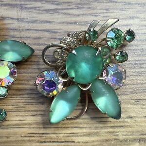 Discover the charm of this elegant vintage earrings sets featuring intricate gold detailing and stunning green accents. Perfect for adding a touch of sophistication to any outfit.