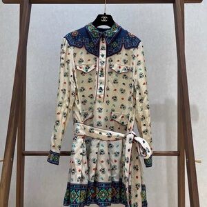 🚩steal authentic Gucci Floral Long Sleeve Dress - Cream and Blue