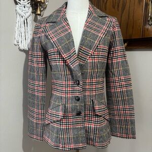 Vintage Plaid Wool Tweed Blazer Jacket Size Extra Small Petite