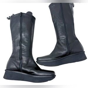 Vintage Y2K Nine West Black Leather Square Toe Platform Boots Women's Size 8