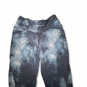 Alphalete Surface Power Blue Tie Dye Oil Stain Leggings Size Medium
