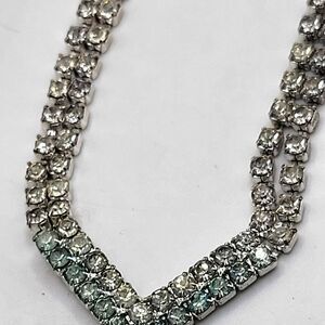 "5/$25" Silvertone Aqua and Clear Rhinestone Cocktail Necklace