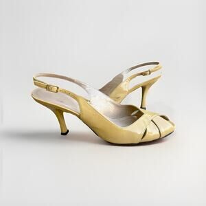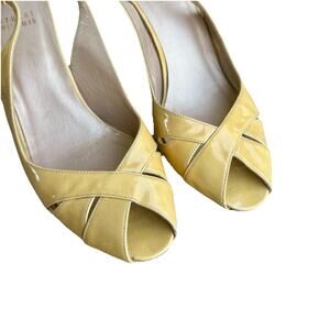 Stuart Weitzman 8.5 Butter Yellow Slingback Kitten Heel Pump Peep Toe Cross