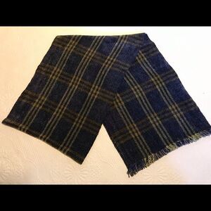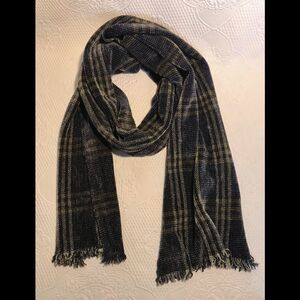 Navy and green plaid chenille scarf with 3/4” fringe trim. 11.5” wide