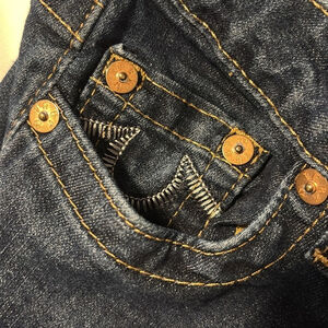 True religion straight leg jeans low rise dark blue cotton blend 5 pockets size 26