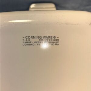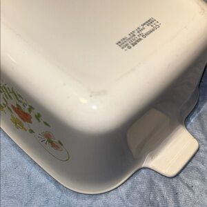 Preowned Corning ware, wildflower pattern casserole dish with handles P4B 7x5 1/2 2x3 numbers written on the bottom of the dish. Range oven microwave safe. Corning New York USA. 1183MA. No cracks or chips. No lid. Measures 3 1/4 inches tall by 9 inches wide handle to handle by 6 inches wide front to back. Have some dark black scuff mark spots on the bottom or around the rims from continual use overtime. please see pictures for all spots. Note there are two measurements in this listing one is the actual measured out with a ruler. The other is the written measurement on the bottom. Still a very usable piece for cooking purposes. Selling from smoke-free home. Thank you for looking. 2/5/26