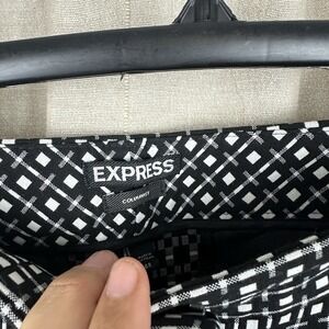 Express women's Columnist ankle-length pants in a black printed fabric. High-rise fit with a sleek, tailored silhouette. Size 6 Regular. New with tags. Polished and professional, perfect for career, office, or business casual wear.